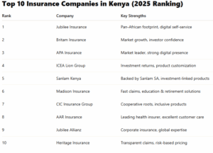 - Sanlam Kenya: Backed by Sanlam Group (South Africa) with operations in 33+ countries across Africa.